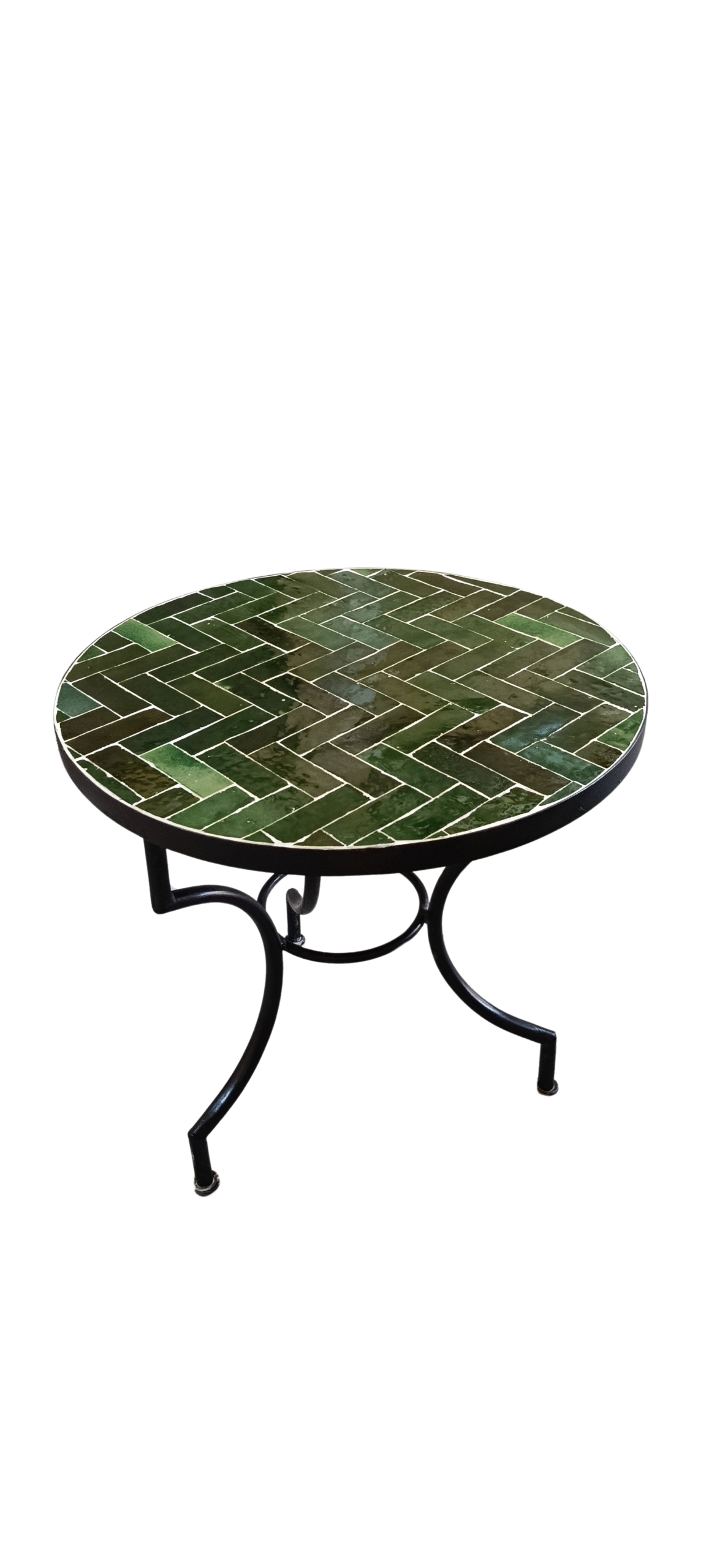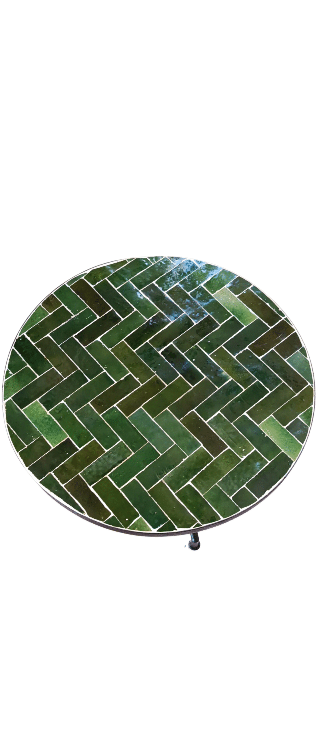 Le plateau en mosaïque dessine un motif chevrons régulier qui capte la lumière et apporte une touche graphique élégante à votre coin repas. �