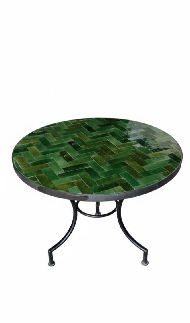 Table verte en Zellige en motif de chevron